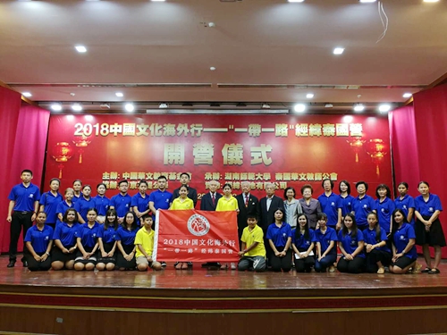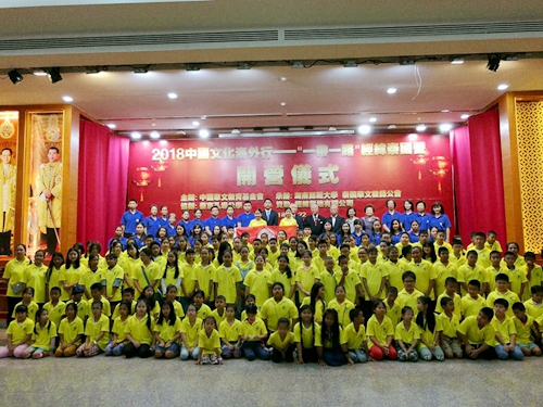 (通讯员 唐伊亮)3月22日上午,由中国华文教育基金会主办,湖南师范大学和泰国华文教师公会共同承办,泰国曼谷孔堤公学协办,经纬置地有限公司资助的“2018中国文化海外行——‘一带一路’经纬泰国营”开营仪式在泰国首都曼谷孔堤公学隆重举行。泰国华文教师公会主席罗宗正、曼谷孔堤公学主席林炎源,中国华文教育基金会项目一部主管辛超,湖南师范大学365bet.com官方网站办公室主任唐伊亮及授课教师姜松荣、王光辉、张英、黄泽亮和研究生曲歌,曼谷当地部分侨领,以及孔堤公学师生、家长共200余人出席开营仪式。
